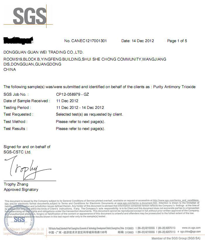 High Purity Antimony Trioxide SGS